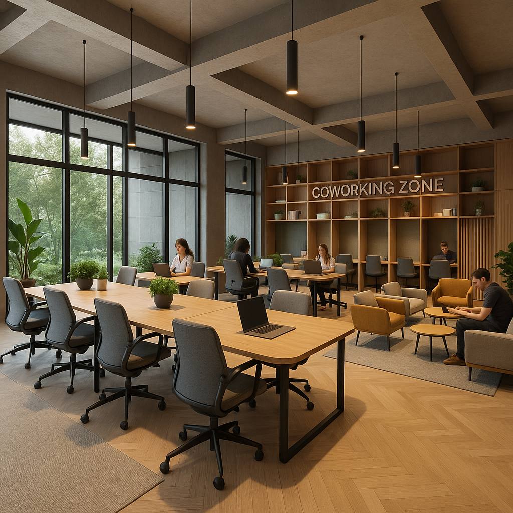 • Cafe, coworking alanları, toplantı salonları
